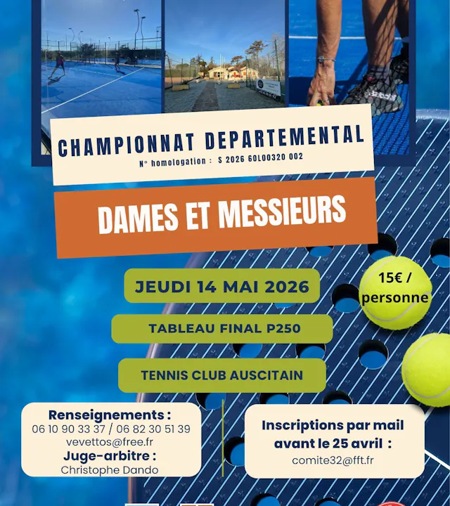 Lancement du championnat départemental de padel 2026 : rendez-vous le 14 mai au TC Auch